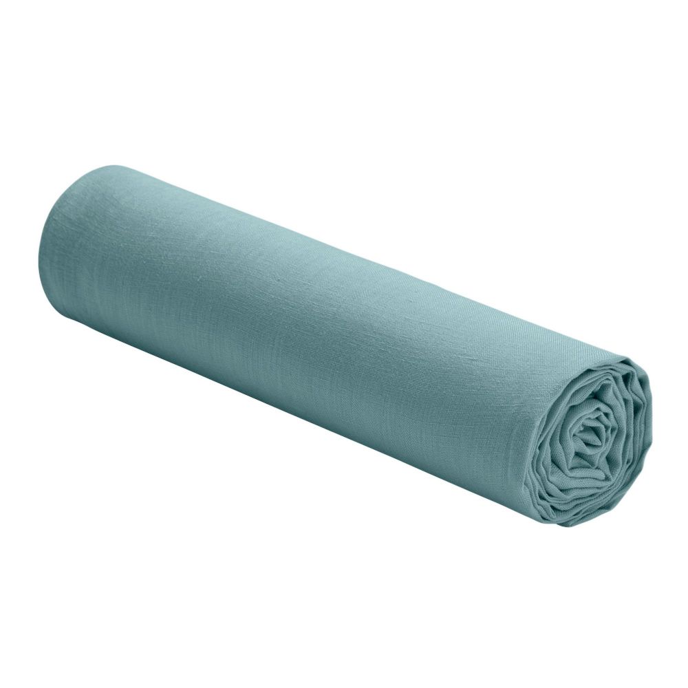 Drap housse 100% lin lavé : couleur - bleu stone, taille - 140 x 190 cm