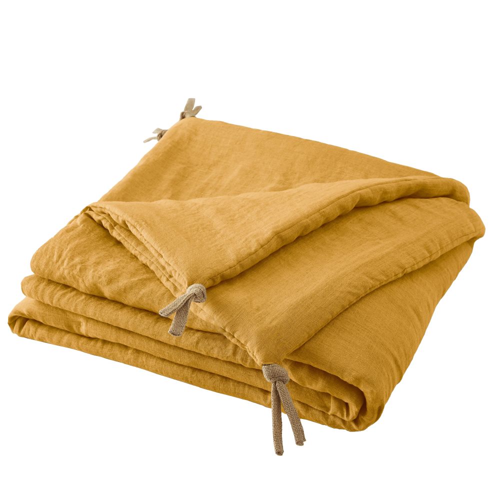 Ce Bout de lit 90x200 cm en lin lavé français apportera une touche élégante et naturelle à votre chambre. Avec sa matière de qualité 100% lin, il offre un confort douillet grâce à son garnissage en polyester. Facile d'entretien, lavable en machine. Disponible en couleur miel.