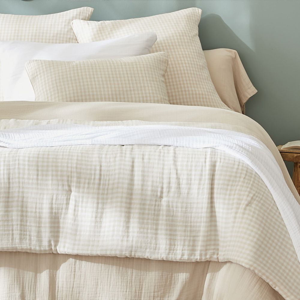 Bout de lit 90x200 cm gaze de coton quadri naturel