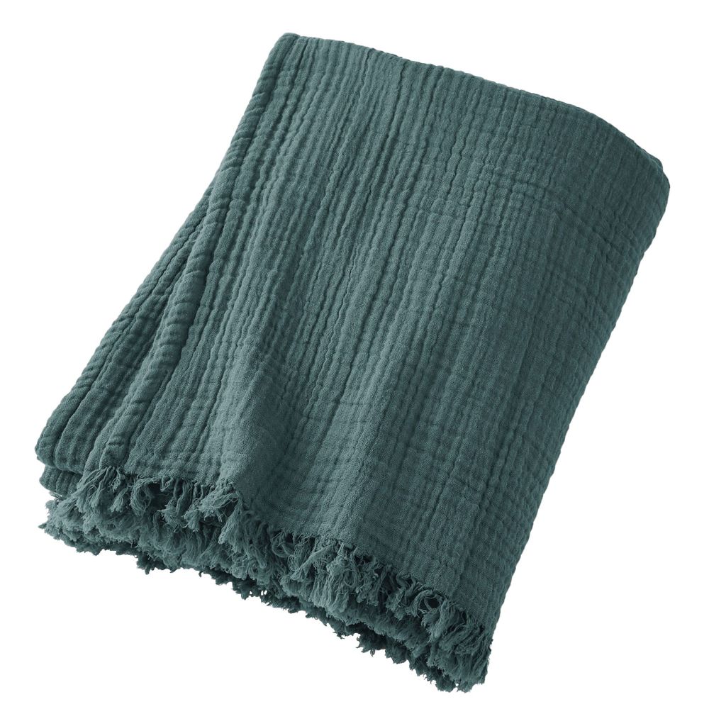 Plaid à franges 130x160 cm gaze de coton canard
