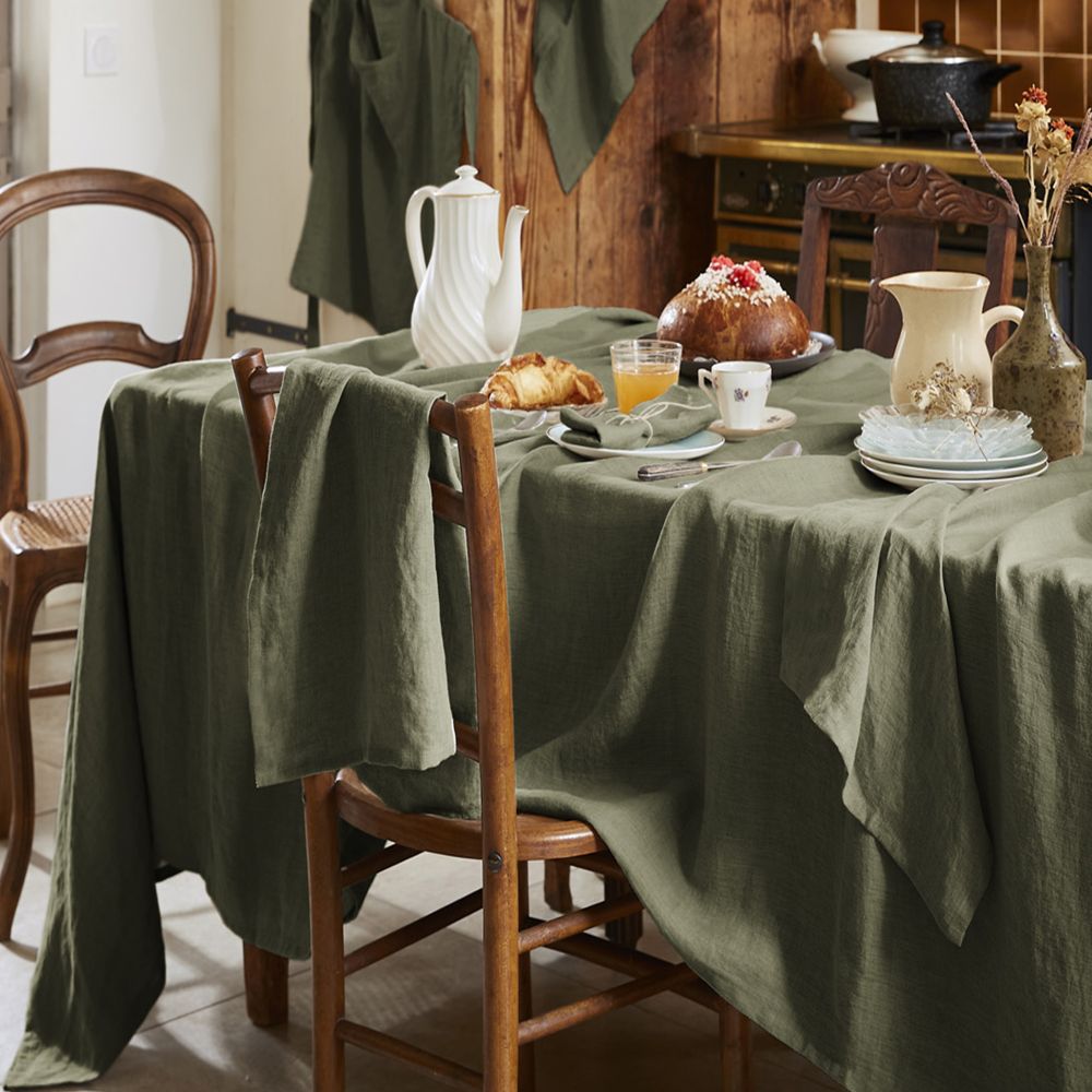 Optez pour la simplicité et l'élégance avec notre Nappe rectangle en lin thym. Fabriquée à 100% en lin lavé français, elle offre une texture douce et des détails raffinés. Lavable à 40°C, elle est facile à entretenir et apportera une touche de fraîcheur à votre table.