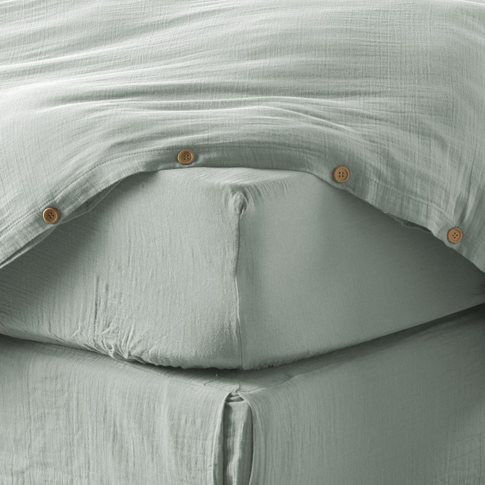 Drap housse 140x190 cm gaze de coton eucalyptus